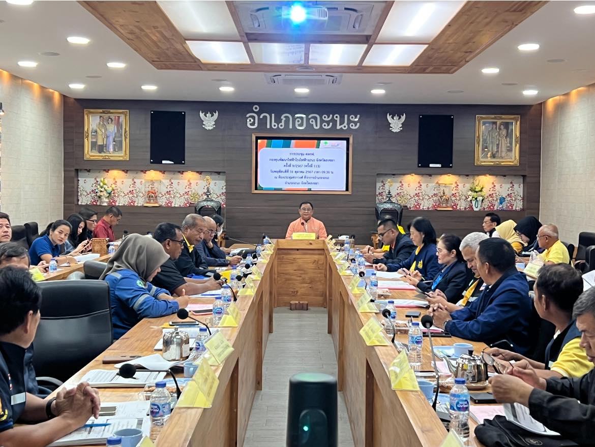 วันพฤหัสบดีที่ 31 ตุลาคม 2567 เวลา 09.30 น. นายเศวต เพชรนุ้ย รองผู้ว่าราชการจังหวัดสงขลา ประธานในการประชุมคณะกรรมการพัฒนาชุมชนในพื้นที่รอบโรงไฟฟ้า (คพรฟ.) กองทุนพัฒนาไฟฟ้าโรงไฟฟ้าจะนะ จังหวัดสงขลา ครั้งที่ 9/2567 (ครั้งที่ 113) ร่วมประชุมกับคณะกรรมการพัฒนาชุมชนในพื้นที่รอบโรงไฟฟ้า (คพรฟ.) เพื่อการพิจารณารับรองรายงานผลการตรวจสอบประจำปีงบประมาณ พ.ศ. 2567 (ครั้งที่ 2) การรับรองรายงานงบการเงินสำหรับปีสิ้นสุดวันที่ 30 กันยายน 2567การยกเลิกโครงการชุมชนประจำปีงบประมาณ พ.ศ. 2567 และเรื่องอื่น ๆ ที่เกี่ยวข้อง ณ ห้องประชุมชวาวงศ์ ที่ว่าการอำเภอจะนะ จังหวัดสงขลา